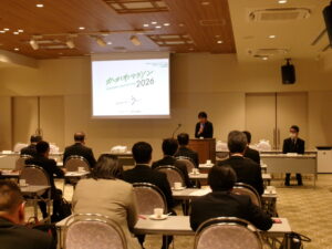 講演会では、香川県交流推進部交流推進課のマラソン準備室長と同課の競技・交流グループ室長補佐を講師に招き、今年3月15日に初めて開催される「かがわマラソン2026」についてご説明いただきました。