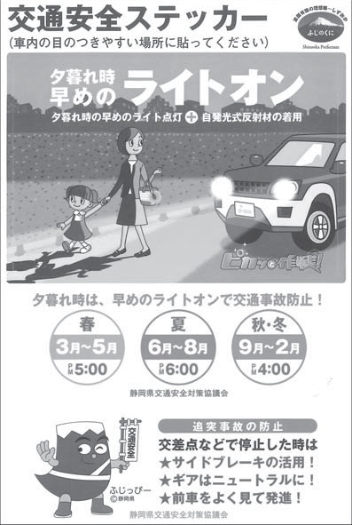 静岡県レンタカー協会では、県交通安全対策協議会が展開する「ピカっと作戦!」に協力しました。